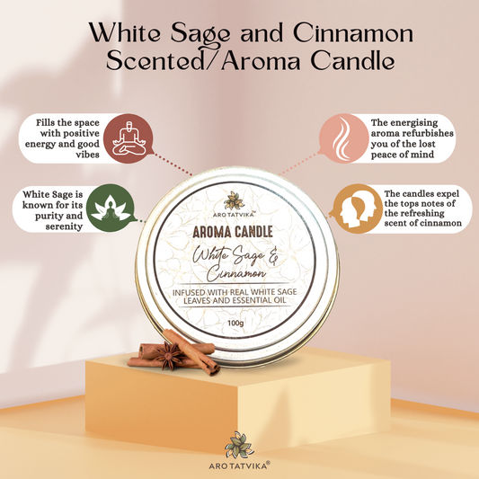 WHITE SAGE AND CINNAMON AROMA/SCENTED CANDLE (100g)