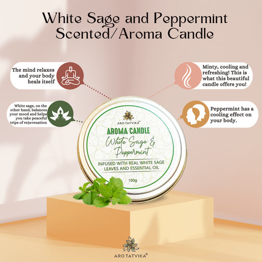 WHITE SAGE AND PEPPERMINT AROMA CANDLE (100g)